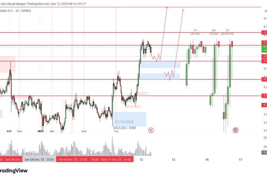Emas kembali menjadi pusat perhatian karena masih bertahan tinggi ketika USD rapuh. Pergerakan terbaru menunjukkan harga stabil di sekitar 4.276,190 dan cenderung konsolidasi tepat di bawah zona 4.278,095. Jika dorongan beli kembali dominan, area 4.293,460 menjadi batas atas berikutnya yang akan dipantau pasar. Namun jika tekanan jual muncul lagi, area reaksi terdekat berada di 4.264,700–4.259,159; kemudian ruang penurunan berikutnya mengarah ke 4.237,569, lalu 4.218,135 hingga 4.207,230 sebagai level yang berpotensi memicu volatilitas lanjutan. Pola ini menggambarkan sentimen yang masih pro-emas, tetapi pasar juga menahan diri sambil menunggu katalis berikutnya dari bank sentral dan data ekonomi.