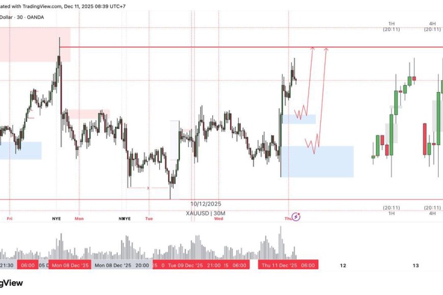 Di komoditas, emas menguat lagi ke sekitar $4.230/oz, menandai kenaikan tiga sesi beruntun dan mendekati area rekor Oktober. Kombinasi The Fed yang sudah mulai melonggarkan kebijakan, proyeksi pemangkasan lanjutan di tahun-tahun ke depan, plus tensi geopolitik (penyitaan tanker minyak dan ketidakpastian proses damai Rusia–Ukraina) menjaga minat safe haven tetap tinggi. Namun, karena dolar mencoba bangkit kembali, volatilitas intraday XAUUSD berpotensi cukup tajam.