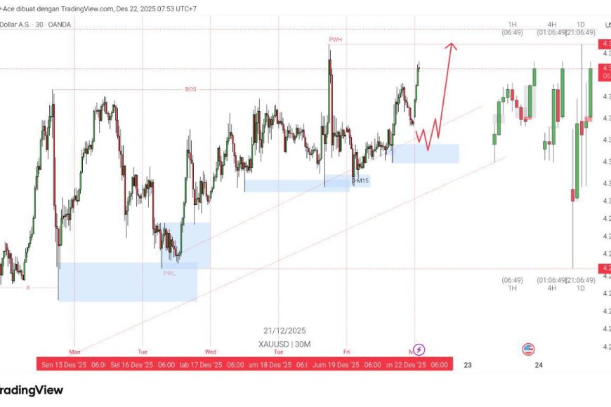 Di saat yang sama, DXY terlihat relatif stabil di sekitar 98,62, memberi sinyal bahwa dorongan emas bukan sekadar “dolar ambruk”, tetapi lebih ke kombinasi ekspektasi pemangkasan suku bunga AS tahun depan yang makin menguat + arus safe haven yang kembali aktif seiring tensi geopolitik (isu kapal/tanker, ketegangan kawasan) dan dukungan permintaan institusional (pembelian bank sentral, aliran ETF). Intinya: emas sedang diperlakukan pasar sebagai “aset perlindungan” ketika ketidakpastian terasa naik, sementara dolar memilih menahan napas dulu.