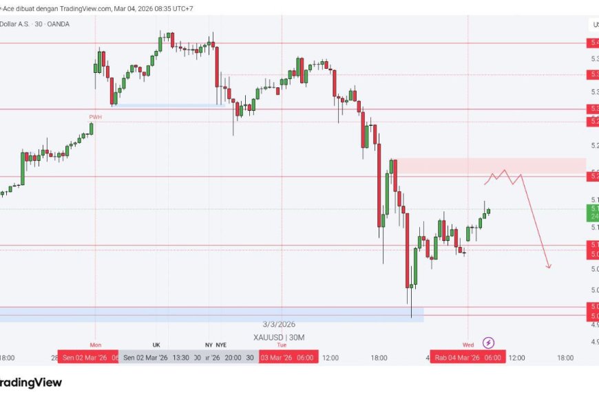 SobatPro, emas rebound pasca sell-off tajam, tapi masih tertahan di bawah zona 5,200 yang jadi area kunci hari ini. Di saat yang sama, DXY tetap kuat seiring lonjakan harga energi yang memicu kekhawatiran inflasi dan mendorong pasar merevisi ekspektasi pemangkasan suku bunga. Fokus berikutnya tertuju pada ADP dan ISM Services PMI malam ini sebagai pemicu volatilitas lanjutan.