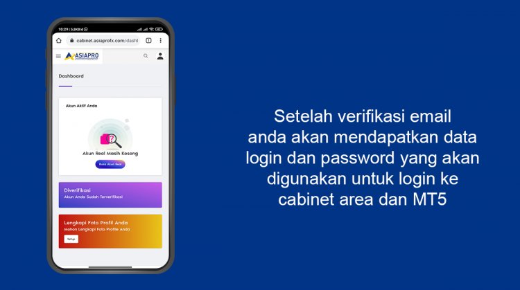 4. Asiapro akan mengirimkan email konfirmasi sesuai dengan data yang telah di isi, klik pada email konfirmasi. Dan akan ada email baru berupa informasi detail akun kabinet, dan login metatrader akun Demo.