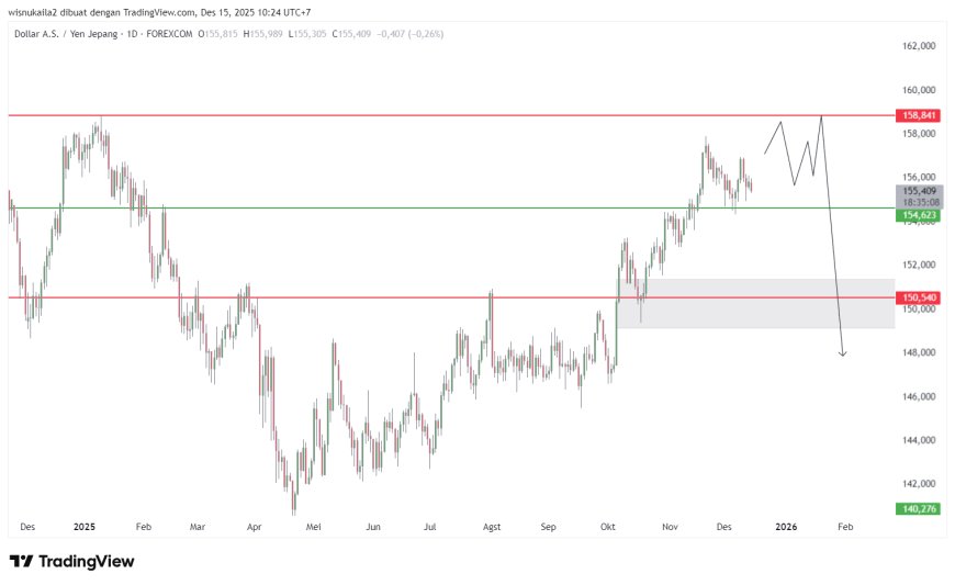 USD/JPY tidak berhasil membuat high baru di supply daily kemungkinan melanjutkan penurunun samapai 150.540